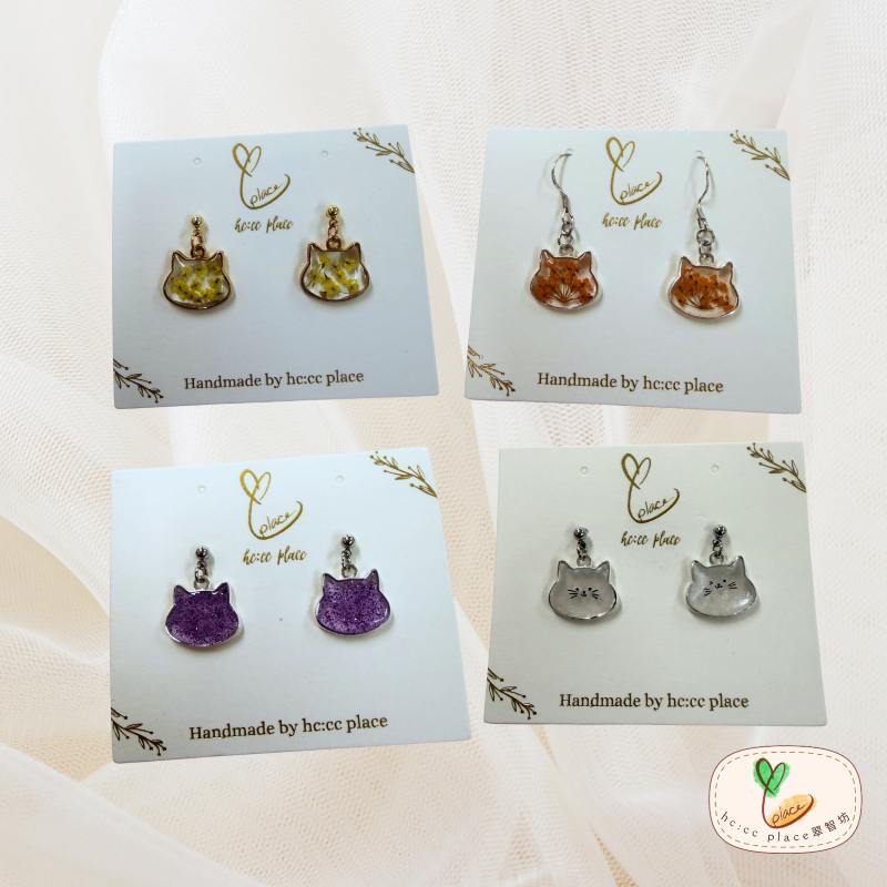 原創水晶滴膠押花粒粒耳環