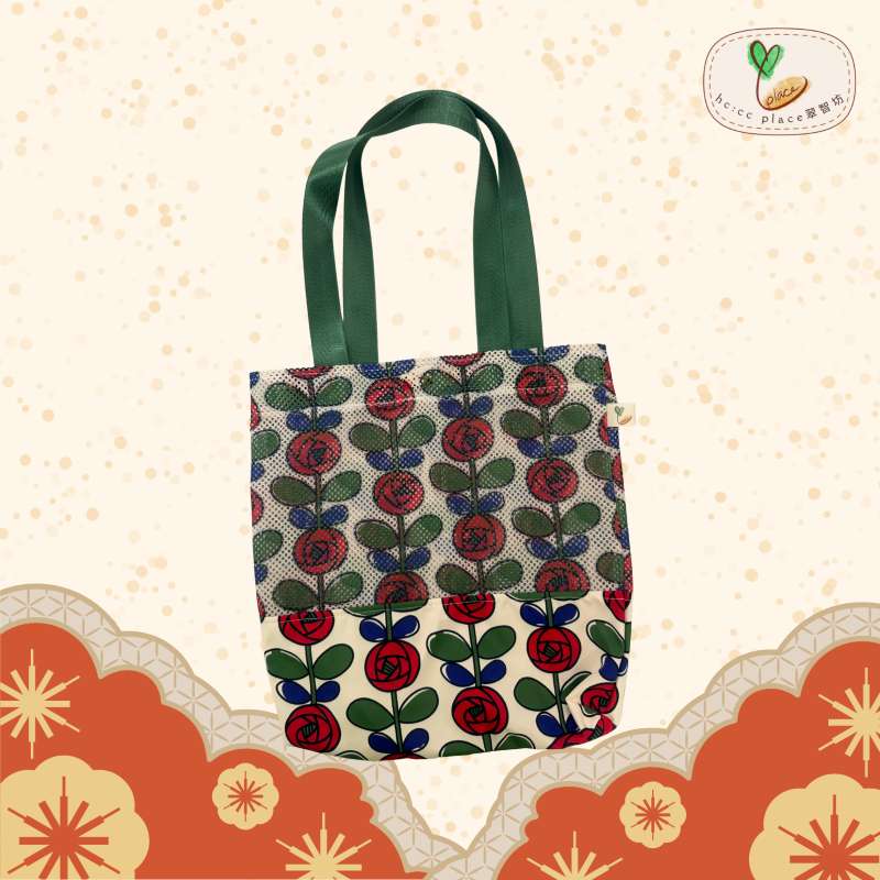 由學員複印紙樣、剪裁及車縫,運用兩種布料同圖案以製作翠智網紋單肩袋,無論上班逛街都一樣得體實用。