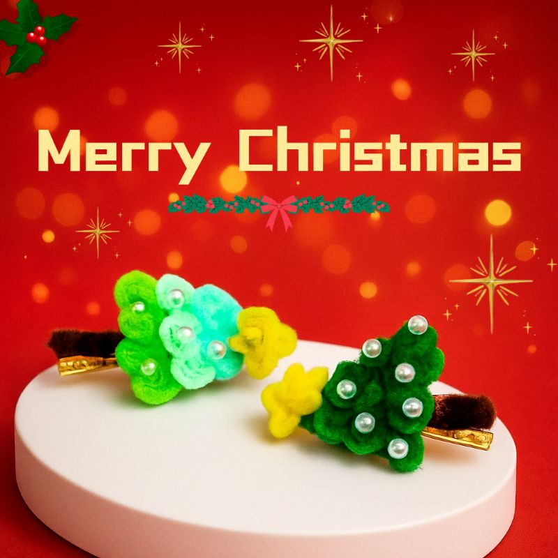 這款聖誕扭扭髮夾以毛毛扭扭條製作,形狀如迷你聖誕樹,搭配可愛的珍珠裝飾,增添節日氣氛。無論是派對還是日常佩戴,都是完美的選擇,讓您的造型更添聖誕魔力!