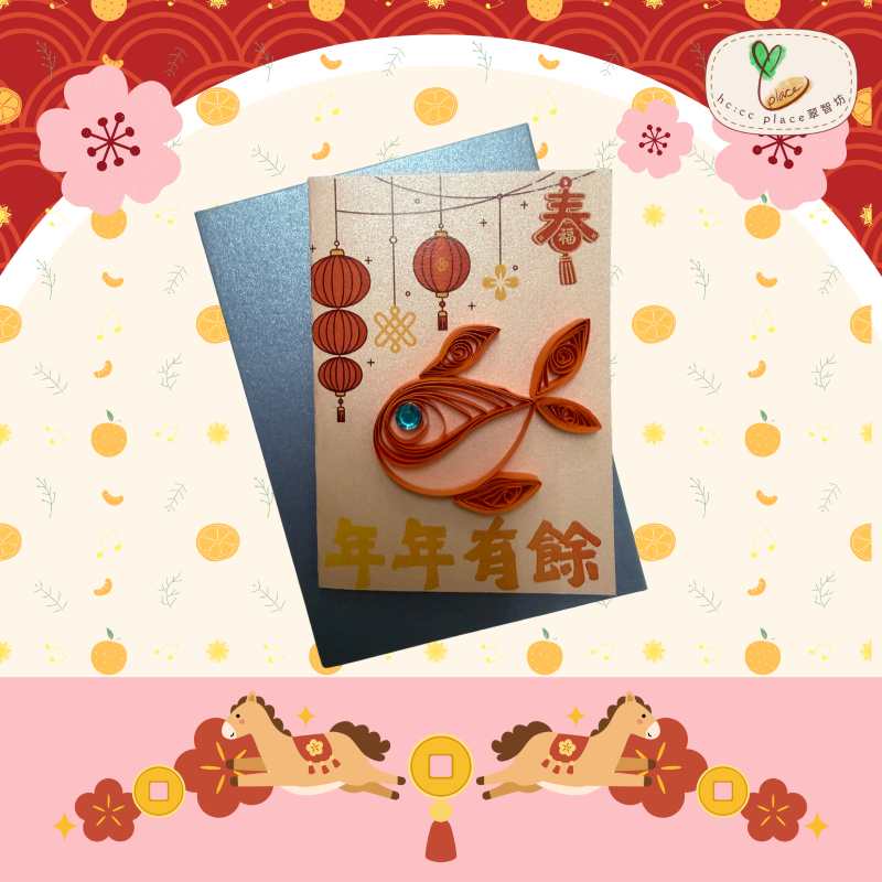 • 由學員選擇顏色紙條、捲製、拼圖及黏貼。學員特意挑選顏色配搭祝賀說話增添農曆新年喜慶。